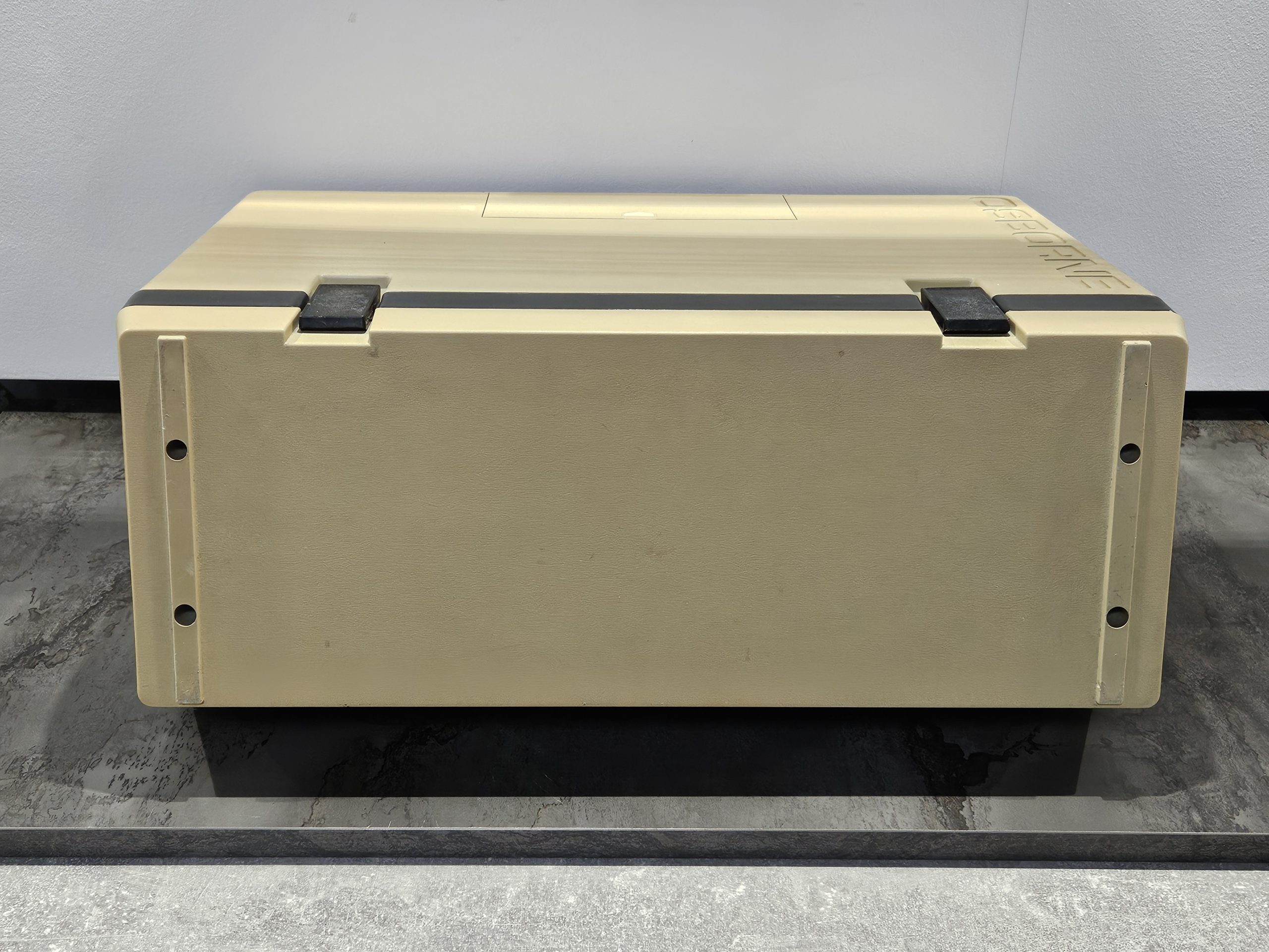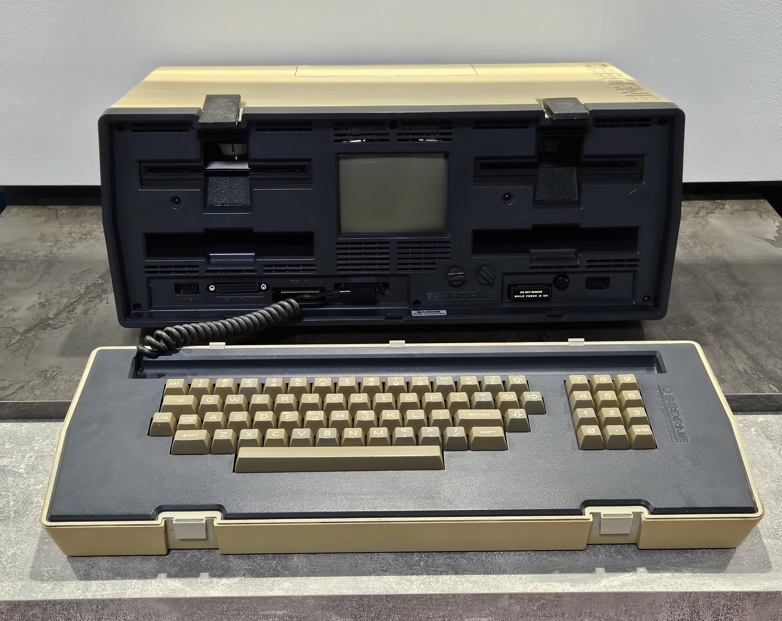 The Οsborne 1 was the first mass-produced portable computer based on a microprocessor and was released in 1981. It was developed by Adam Osborne & Lee Felsenstein and manufactured by the Osborne Computer Corporation company. Its design was heavily influenced by the earlier computer Xerox NoteTaker. The Osborne 1, like other laptops of its generation, does not have an internal battery, which means that the user must be close to a power supply for its operation. It had two 5.25¨ floppy disks and just below there were two cases for the user to store disks. In order to transfer the computer, its keyboard “closes” and essentially turns into the bottom of the computer. The Osborne 1, in terms of dimensions, is quite reminiscent of a briefcase and was supported by the corresponding carrying handle that was placed on top of the computer.