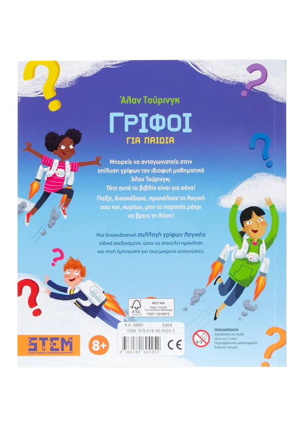 Μπορείς να ανταγωνιστείς στην επίλυση γρίφων τον ιδιοφυή μαθηματικό Άλαν Τούρινγκ; Τότε αυτό το βιβλίο για σένα! Παίξε, διασκέδασε, προκάλεσε τη λογική σου και, κυρίως, μην τα παρατάς μέχρι να βρεις τη λύση! Μια διασκεδαστική συλλογή γρίφων λογικής ειδικά σχεδιασμένη, ώστε να αποτελεί πρόκληση και πηγή έμπνευσης για τους μικρούς αναγνώστες.