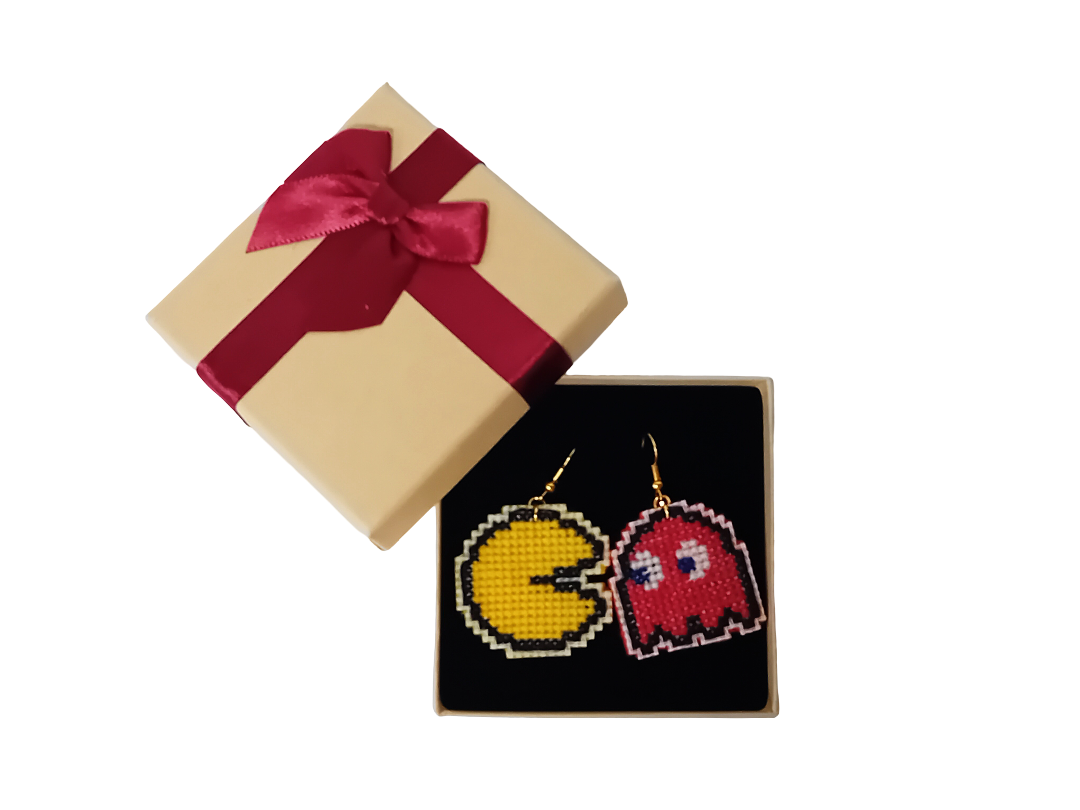 Μάλλινα χειροποίητα σκουλαρίκια με τον γνωστό ήρωα Pacman!