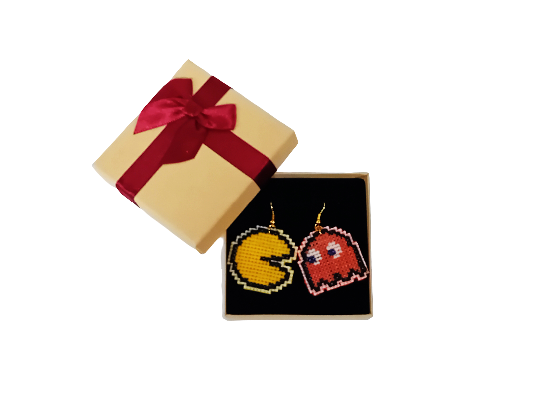 Μάλλινα χειροποίητα σκουλαρίκια με τον γνωστό ήρωα Pacman!