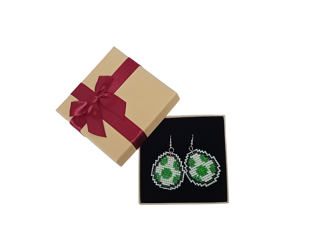 Μάλλινα χειροποίητα σκουλαρίκια με σχέδιο αυγό του Yoshi από το γνωστό videogame Super Mario!