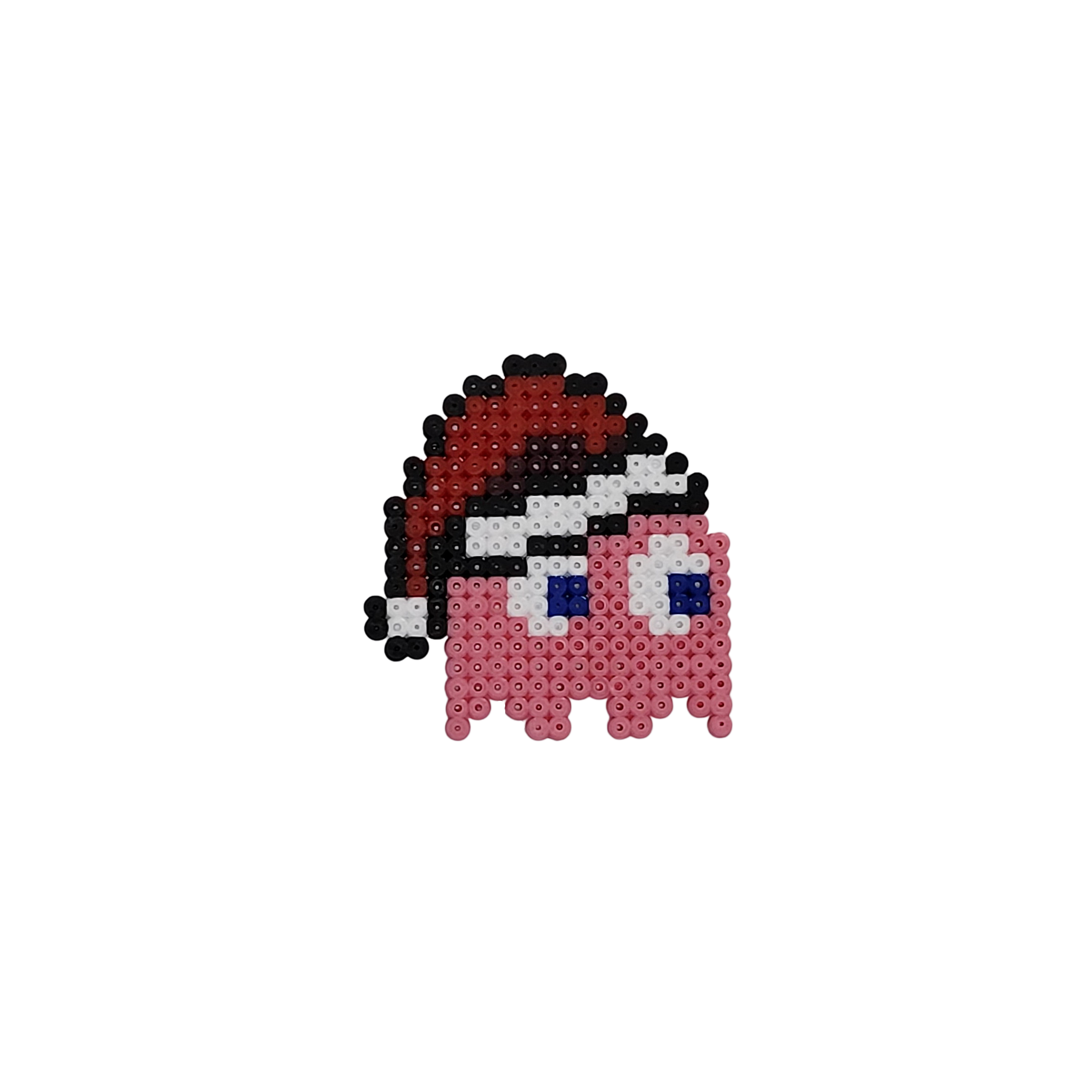 Στολίδι Pixel art χειροποίητο με Pac Man Φαντασματάκι Christmas Ροζ από το θρηλικό παιχνίδι Pac-Man σε μορφή Χριστουγεννιάτικης μπάλας, κατασκευασμένα στο χέρι τοποθετώντας μια-μια τις χάντρες.